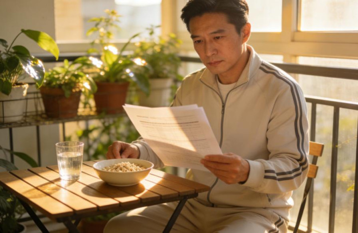 大约半个月后,他到医院做了第一次复查。早晨抽完血,他坐在候诊区等结果,手里仍拿着装着草茶的保温壶。几个小时后,化验单出来,医生边看边点头:总胆固醇从出院时的 7.9 mmol/L 降到了 6.3 mmol/L,甘油三酯由 4.6 mmol/L 降至 3.2 mmol/L,低密度脂蛋白也下降到 4.1 mmol/L,虽然尚未完全达标,但趋势稳定向好,显示出初步改善迹象。医生嘱咐他继续保持当前的生活习惯,避免情绪波动与暴饮暴食,适当活动即可。听到医生的话,林建荣终于是松了一口气,认为只要自己保持着良好的生活习惯,就能维持住身体的平衡。