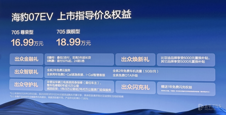海豹07EV所处的中型纯电轿车赛道竞争激烈,面临多款主流竞品的用户分流压力。整体来看,海豹07EV凭借均衡的产品力与贴合主流消费区间的定价,有望成为该细分市场的走量车型,进一步完善比亚迪海洋网产品布局。(文:太平洋汽车李喆)